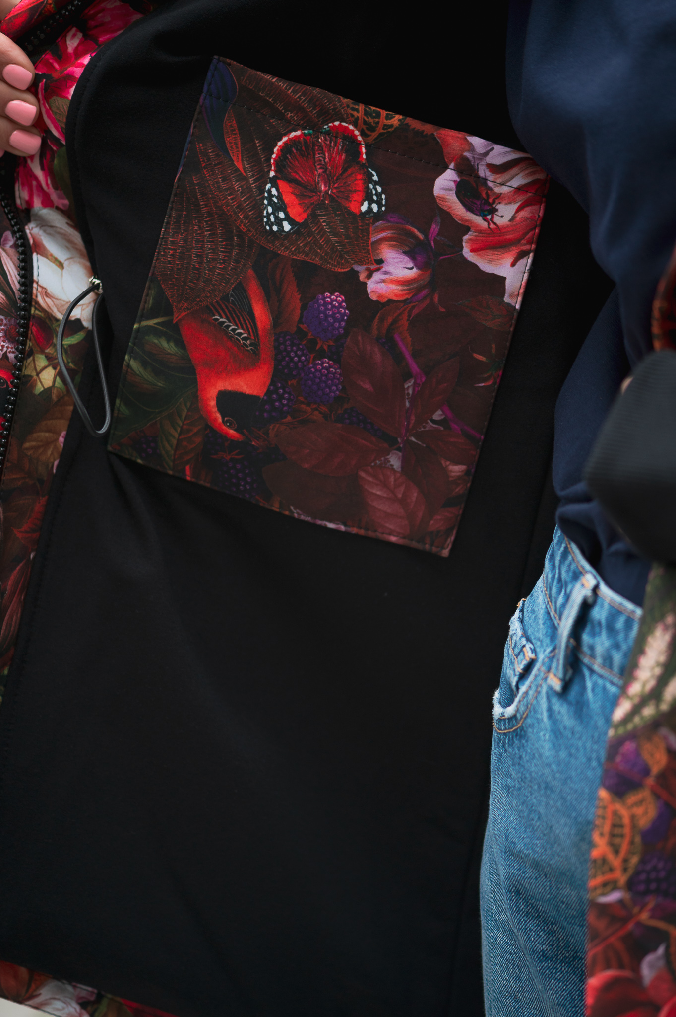 Kieszonka po wewnętrznej stronie? Wedle życzenia i to softshellowa, kolorowa z zakładką na tak zwane "niewypadanie z kieszeni".