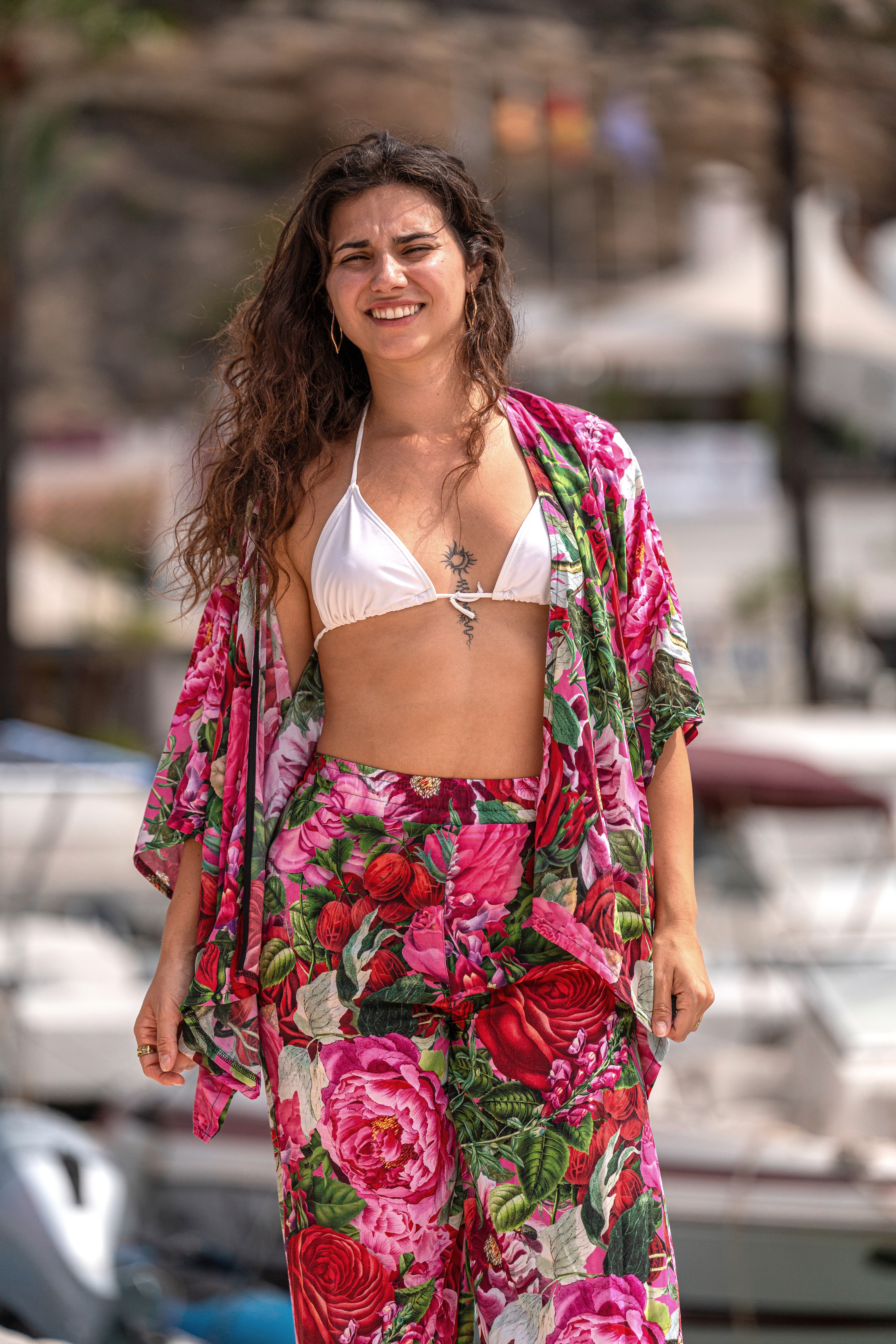 Zwiewne kimono spektakularnie rozwiane tworzy efekt "wow", przyciągając uwagę i dodając oryginalności Twojemu wyglądowi. Kimono wykonane jest z wysokiej jakości wiskozy, dzięki czemu jest lekkie, zwiewne i oddychające. Materiał ten gwarantuje maksymalny komfort nawet w najgorętsze dni. Niezależnie od tego, czy korzystasz z niego na plaży, czy nosisz jako stylowy dodatek, będziesz czuła się świeża i swobodna. Bądź kreatywna i eksperymentuj z różnymi sposobami noszenia naszego kimono, do kompletu możesz zamówić szorty lub spodnie!