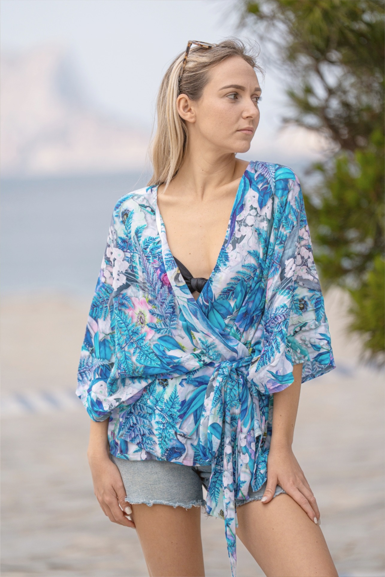 Zwiewne kimono spektakularnie rozwiane tworzy efekt "wow", przyciągając uwagę i dodając oryginalności Twojemu wyglądowi. Kimono wykonane jest z wysokiej jakości wiskozy, dzięki czemu jest lekkie, zwiewne i oddychające. Materiał ten gwarantuje maksymalny komfort nawet w najgorętsze dni. Niezależnie od tego, czy korzystasz z niego na plaży, czy nosisz jako stylowy dodatek, będziesz czuła się świeża i swobodna. Bądź kreatywna i eksperymentuj z różnymi sposobami noszenia naszego kimono, do kompletu możesz zamówić szorty lub spodnie!