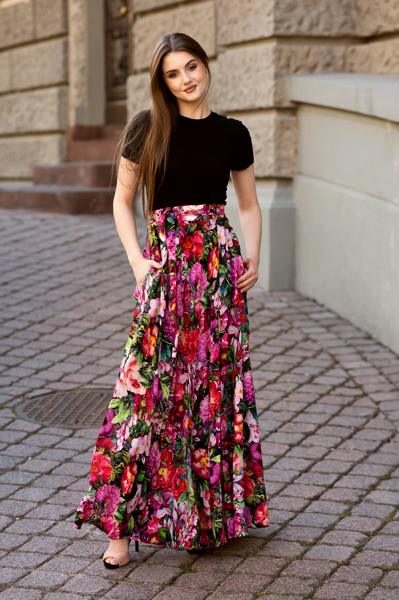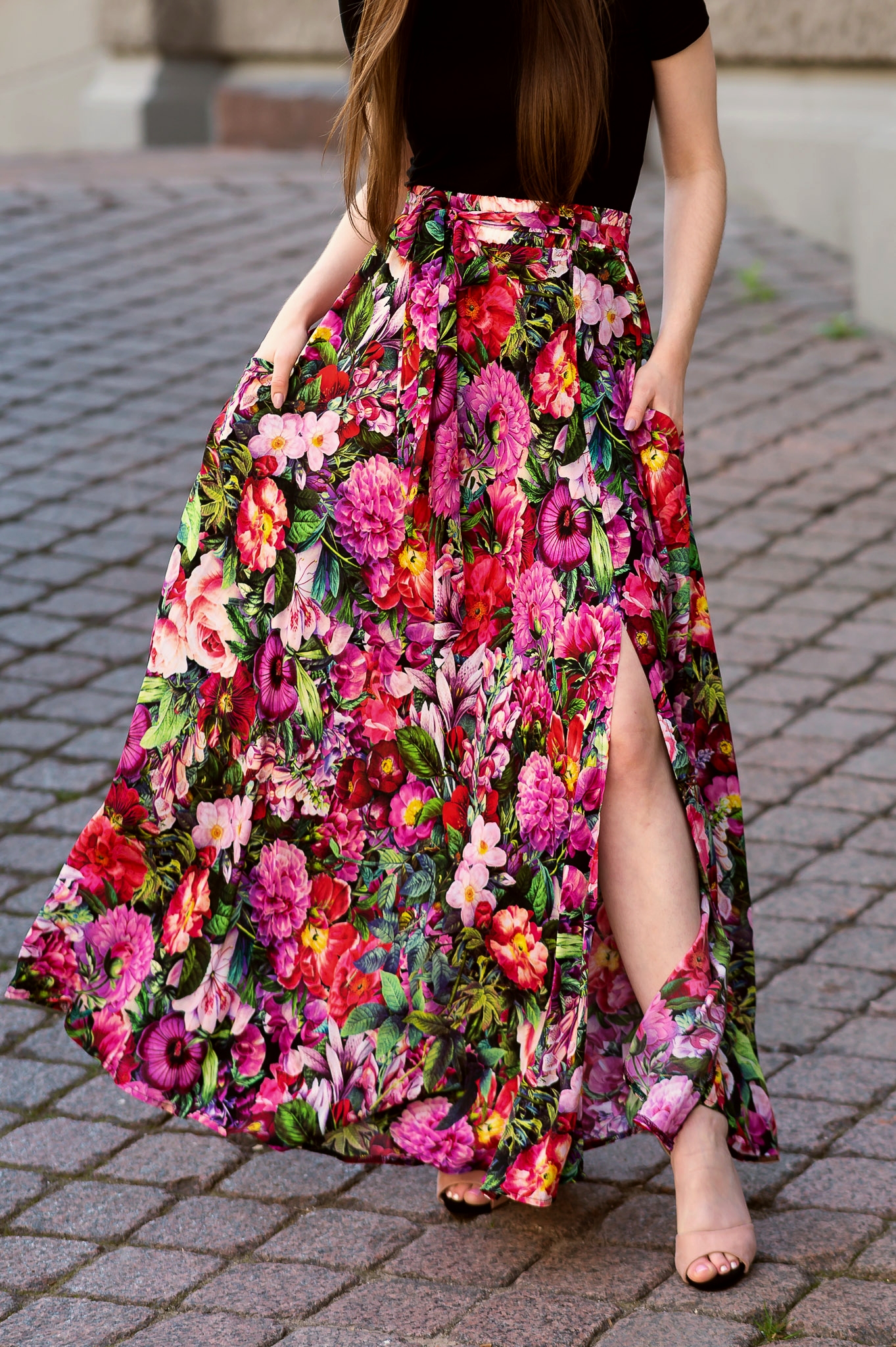 Nie musisz martwić się o przechowywanie drobnych przedmiotów, ponieważ spódnica posiada praktyczne kieszenie, w których możesz schować niezbędne drobiazgi. Ta spódnica maxi ma również rozcięcie na nodze, które podczas chodzenia subtelnie odkrywa Twoje kolano, nadając Ci zmysłowy i elegancki wygląd. To idealny element garderoby zarówno na codzienne spacery, jak i na wyjątkowe okazje. Nie przegap okazji, aby dodać do swojej kolekcji tę piękną spódnicę. Zamów teraz i ciesz się unikalnym stylem, który przyciągnie uwagę wszystkich dookoła!
