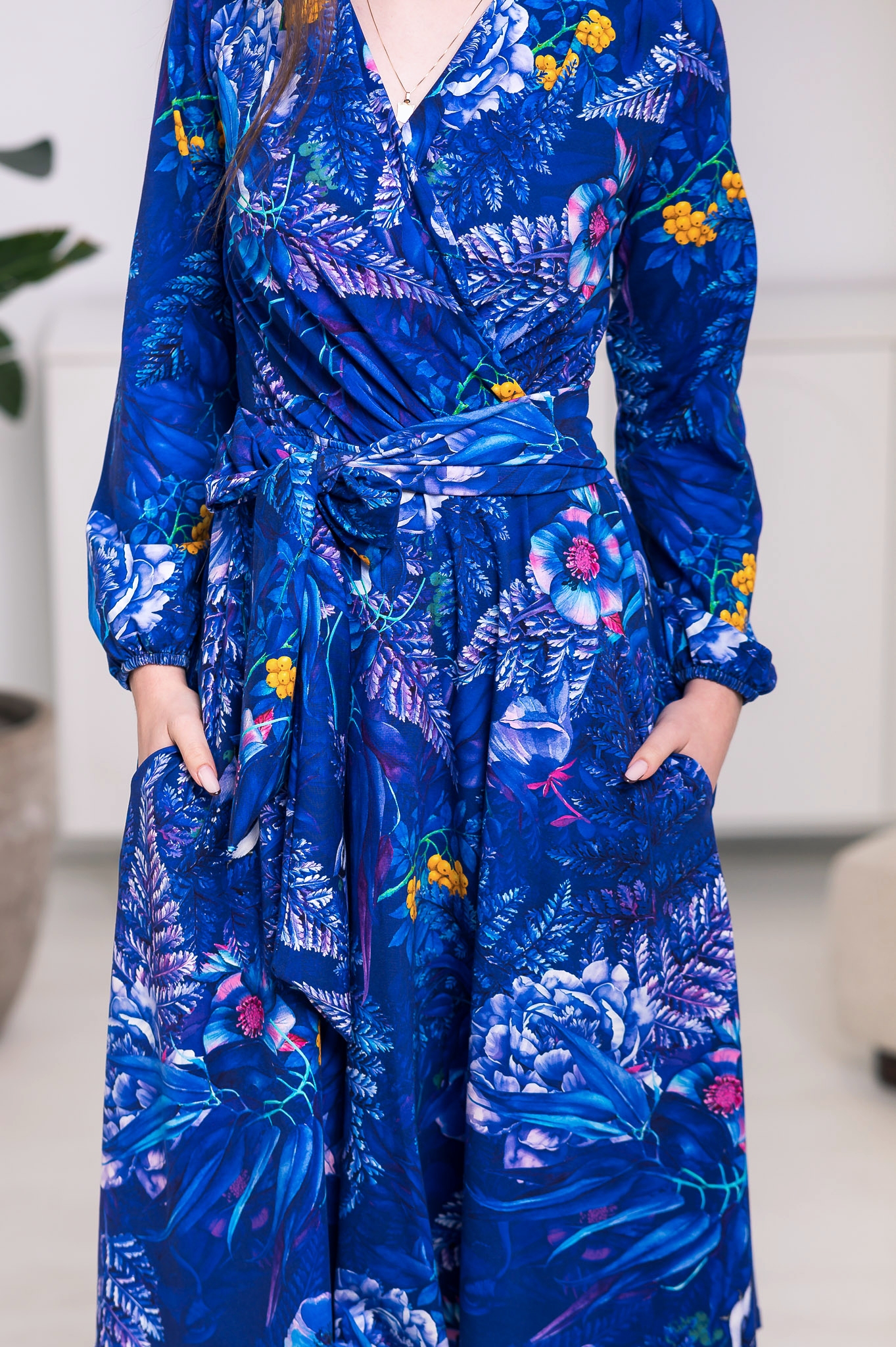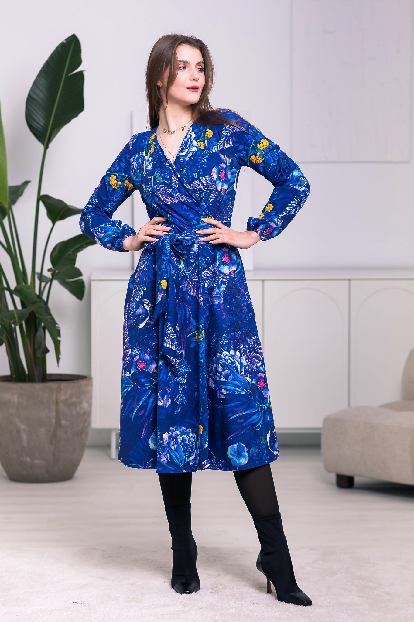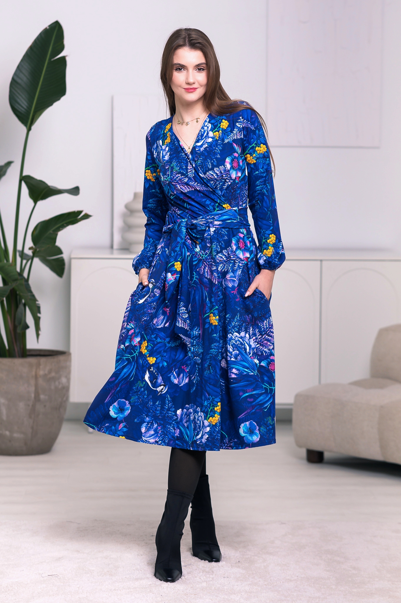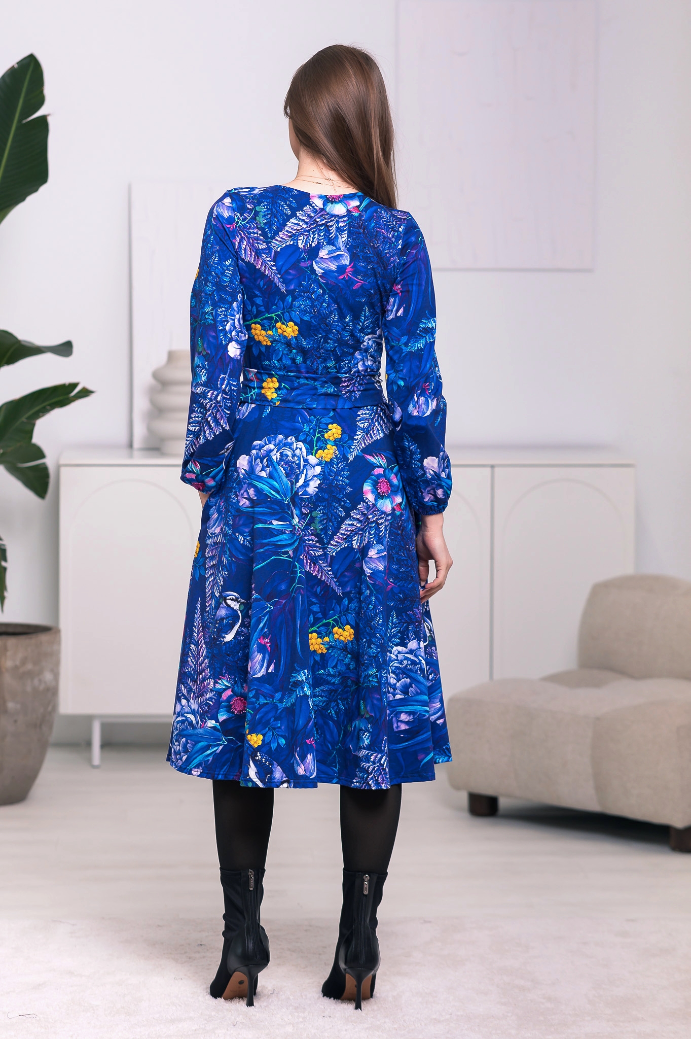 Sukienka Midi taliowana - Szafirowe paprocie