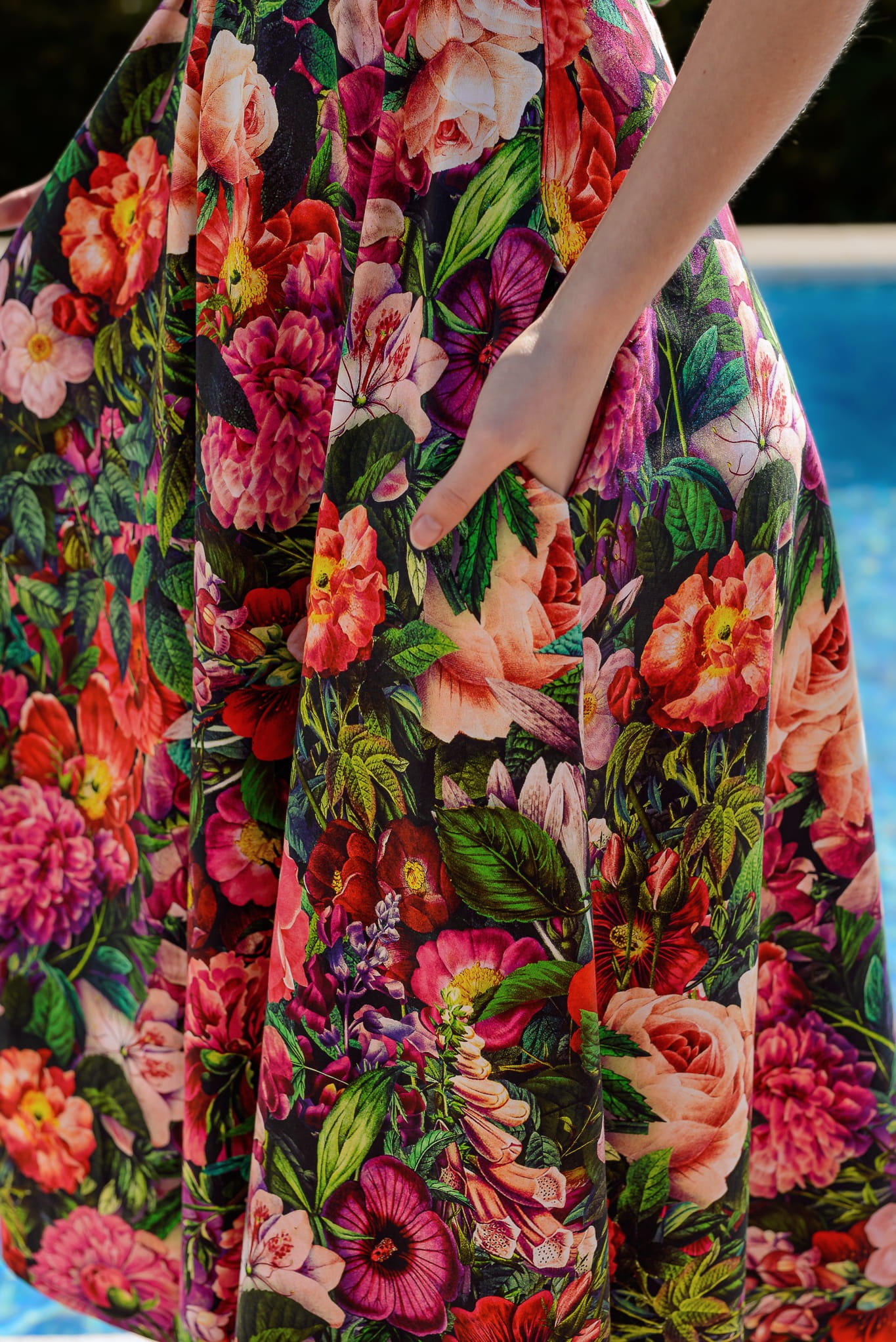 Sukienka Midi zakryte plecy - Kwitnąca Hiszpania
