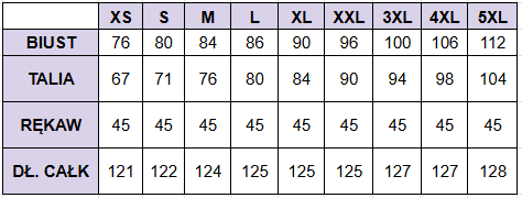 Podane wymiary ubrania mierzone są na płasko, nie są to wymiary sylwetki.