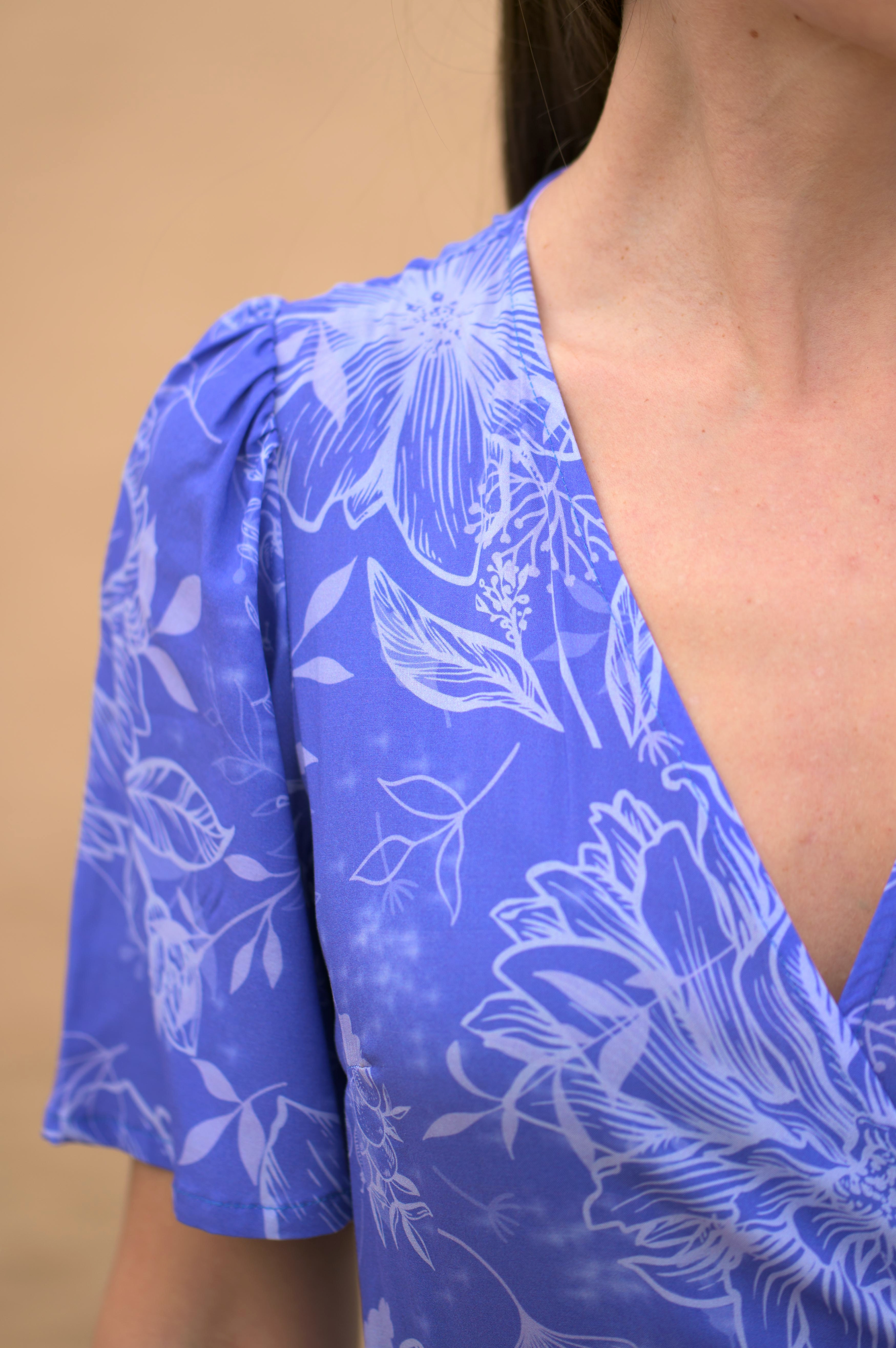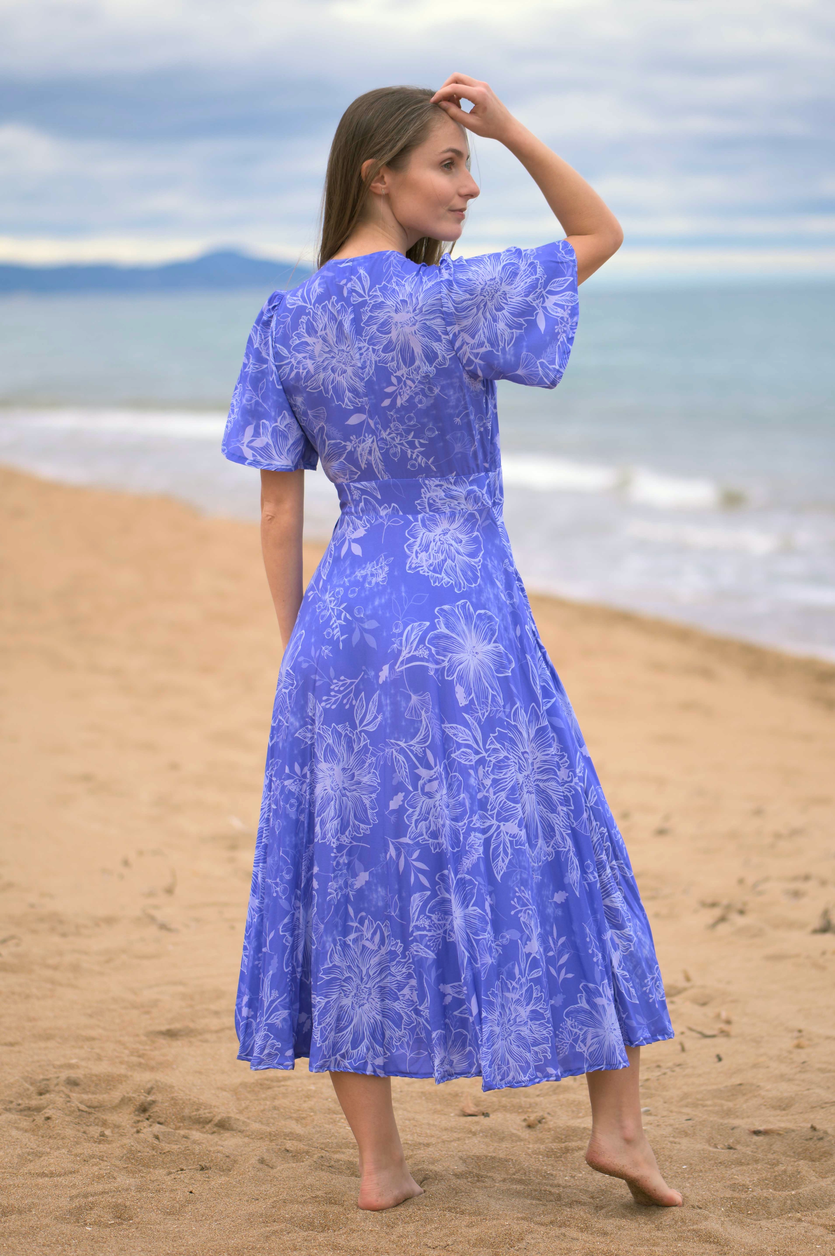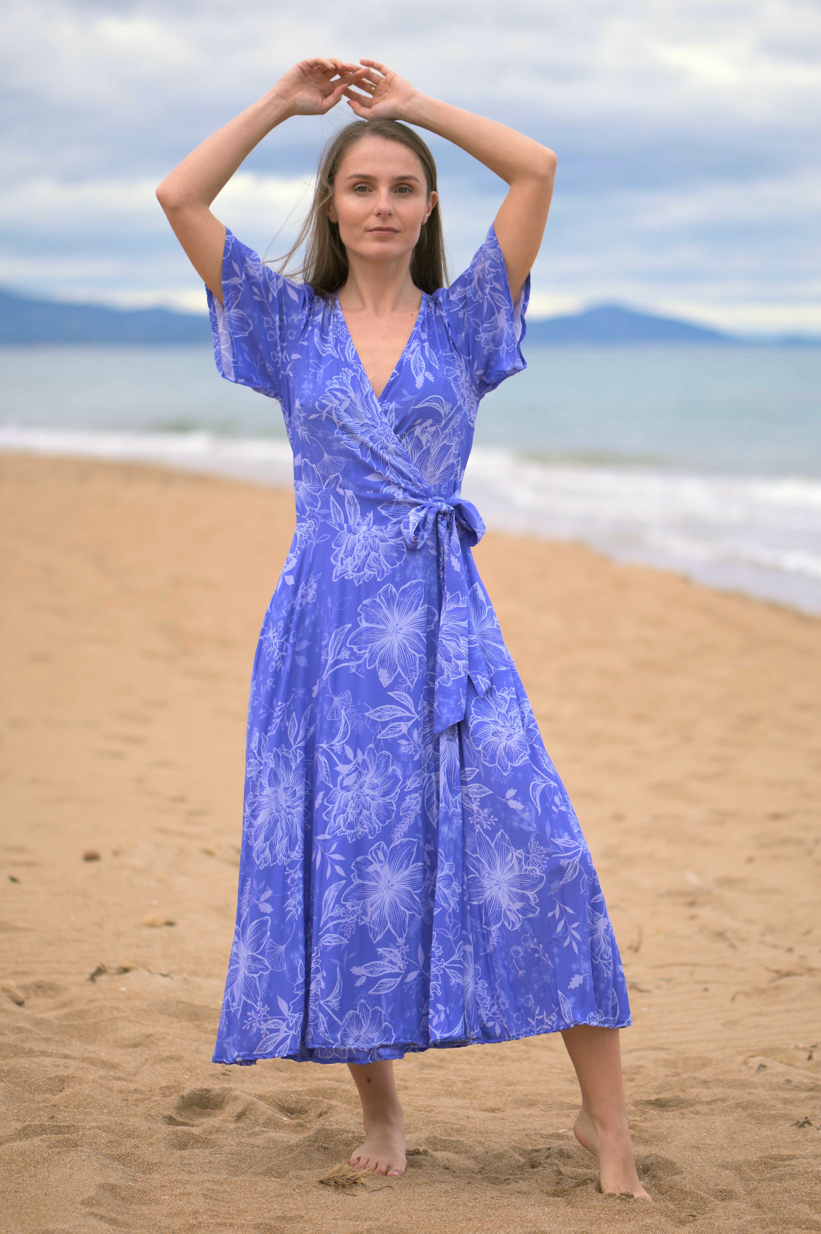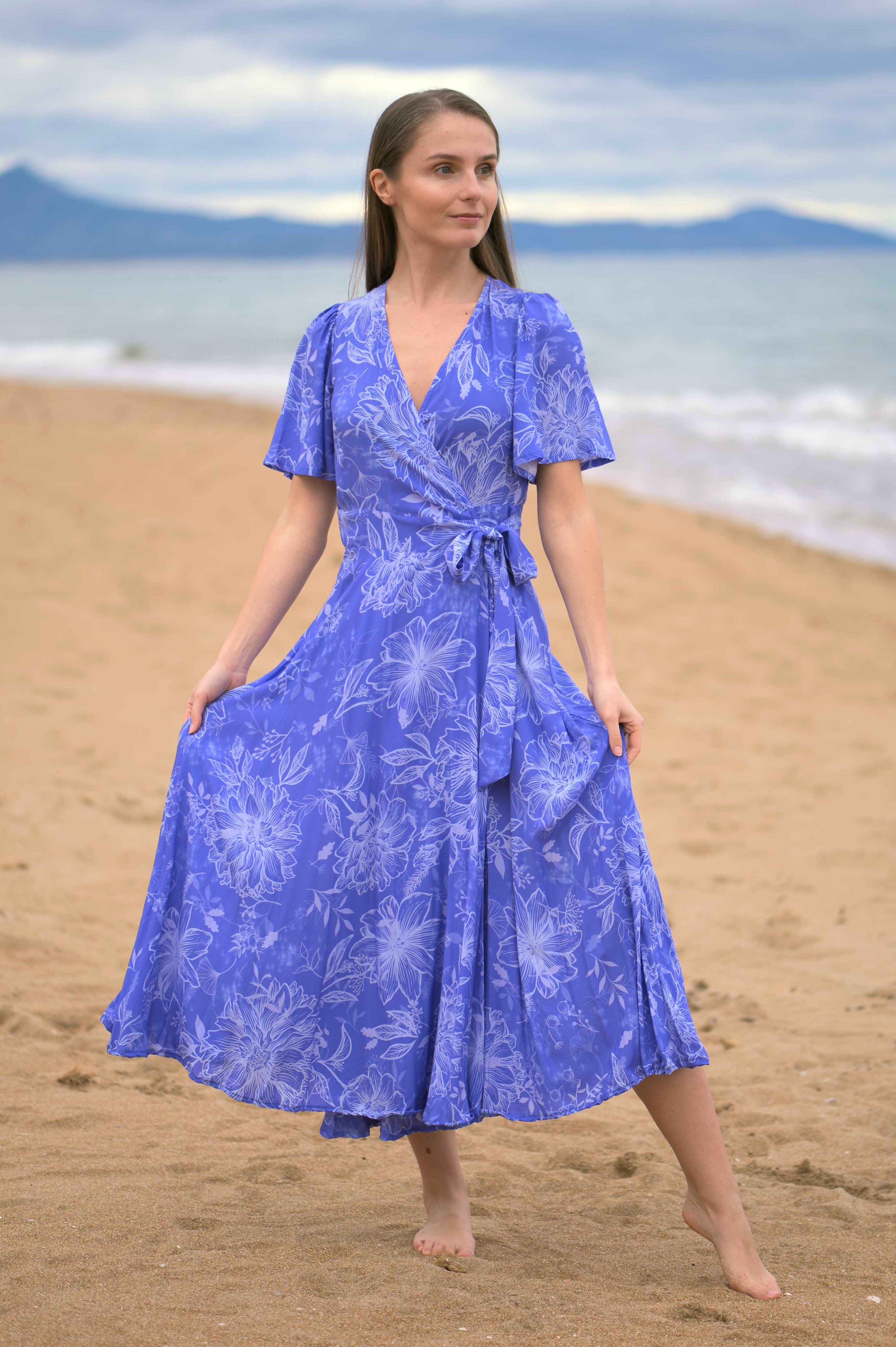 Lekka, wiązana sukienka MIDI z krótkim rękawem typu półklosz to nasz letni bestseller! Uszyta z cienkiej wiskozy z dodatkiem elastanu jest bardzo kobieca, a jednocześnie romantyczna. Sylwetkę możemy podkreślić talią, którą możemy regulować wiązaniami po wewnętrznej stronie oraz z boku. Dzięki wiązaniu kopertowy dekolt pięknie się układa. Kieszenie znajdują się po bokach na szwach. Dzięki swojej objętości materiału pięknie pracuje w ruchu i na wietrze, doskonale sprawdzi się zarówno na wakacjach, podczas romantycznej kolacji lub jako sukienka na wesele.