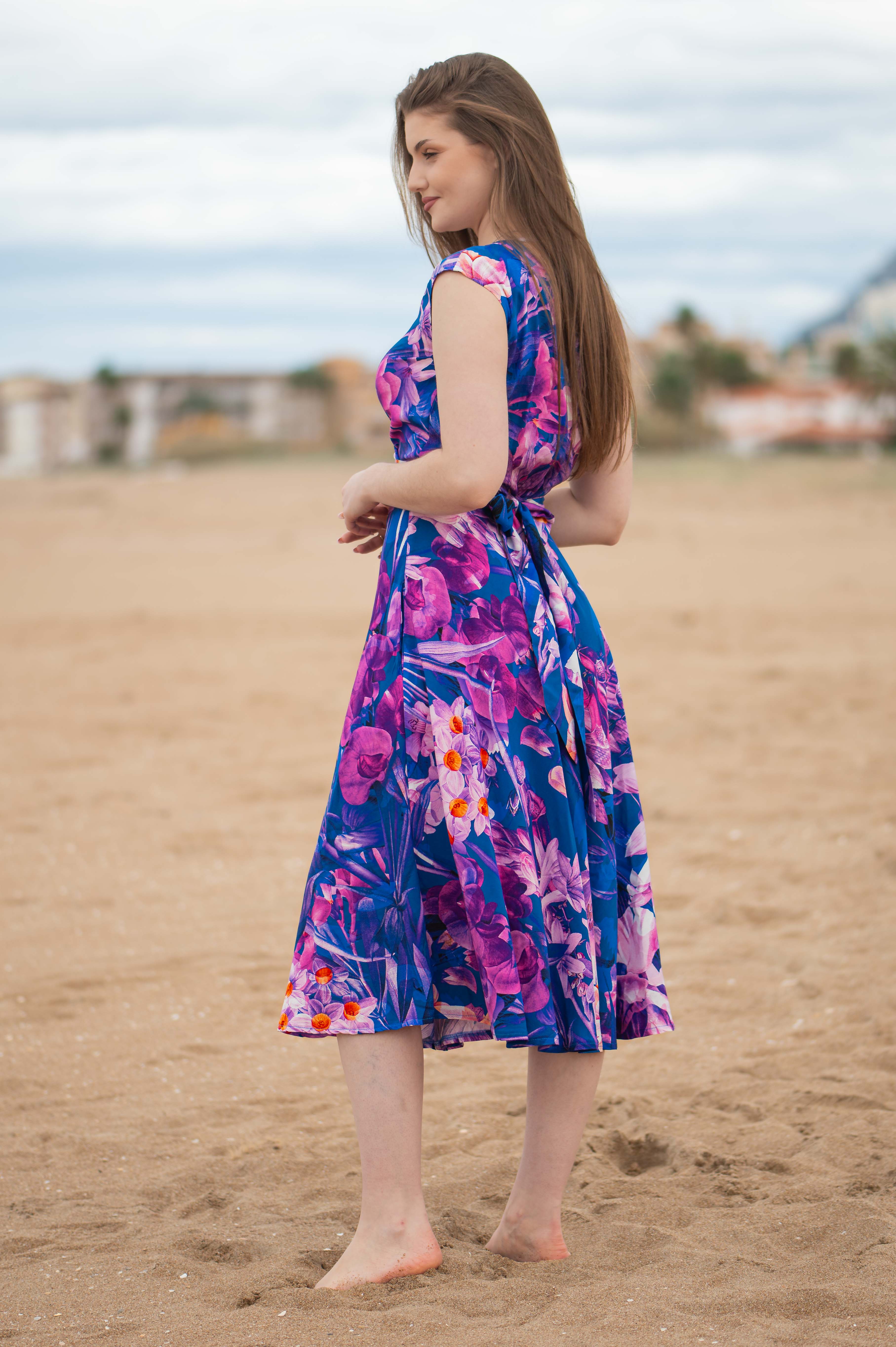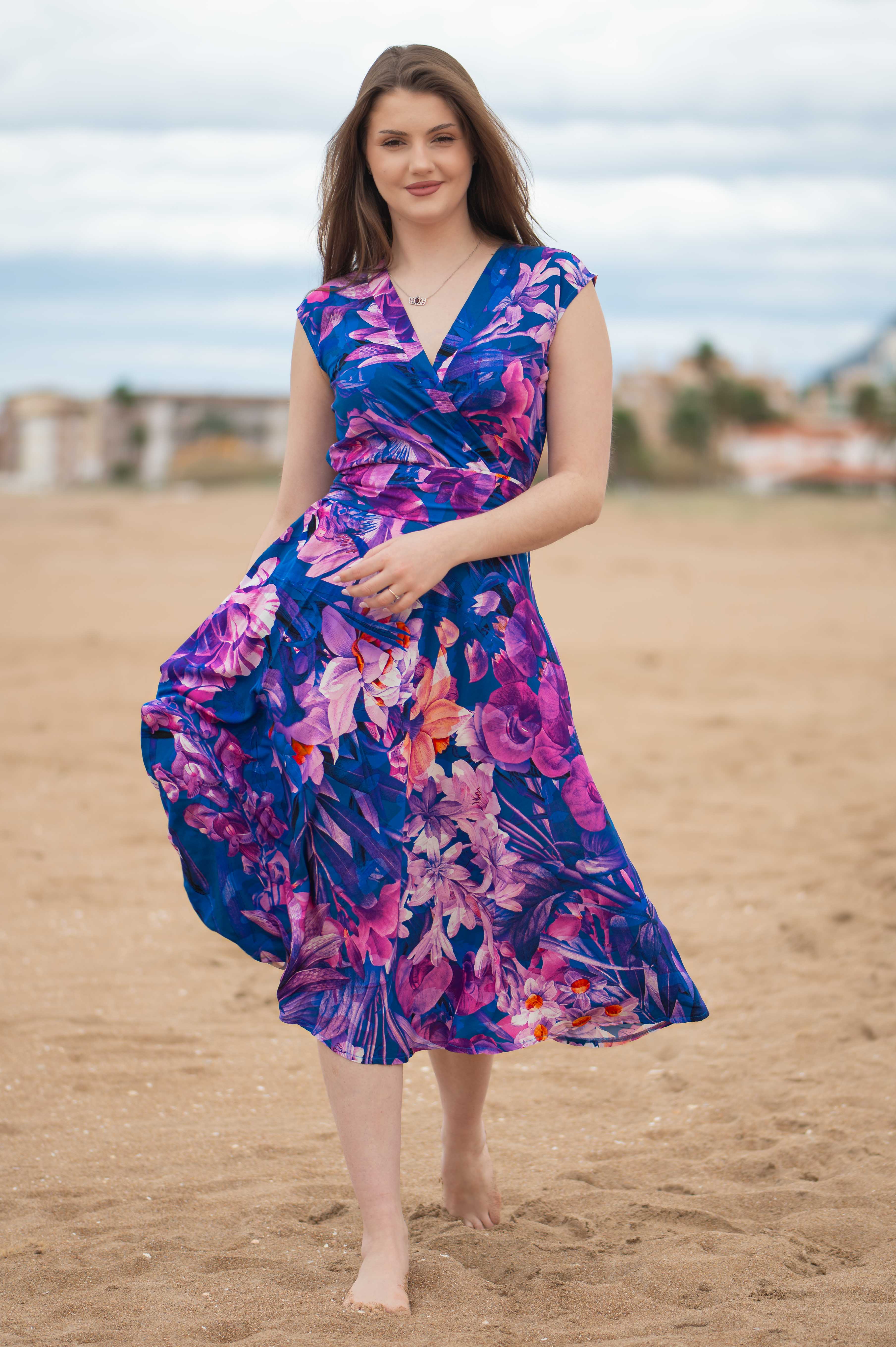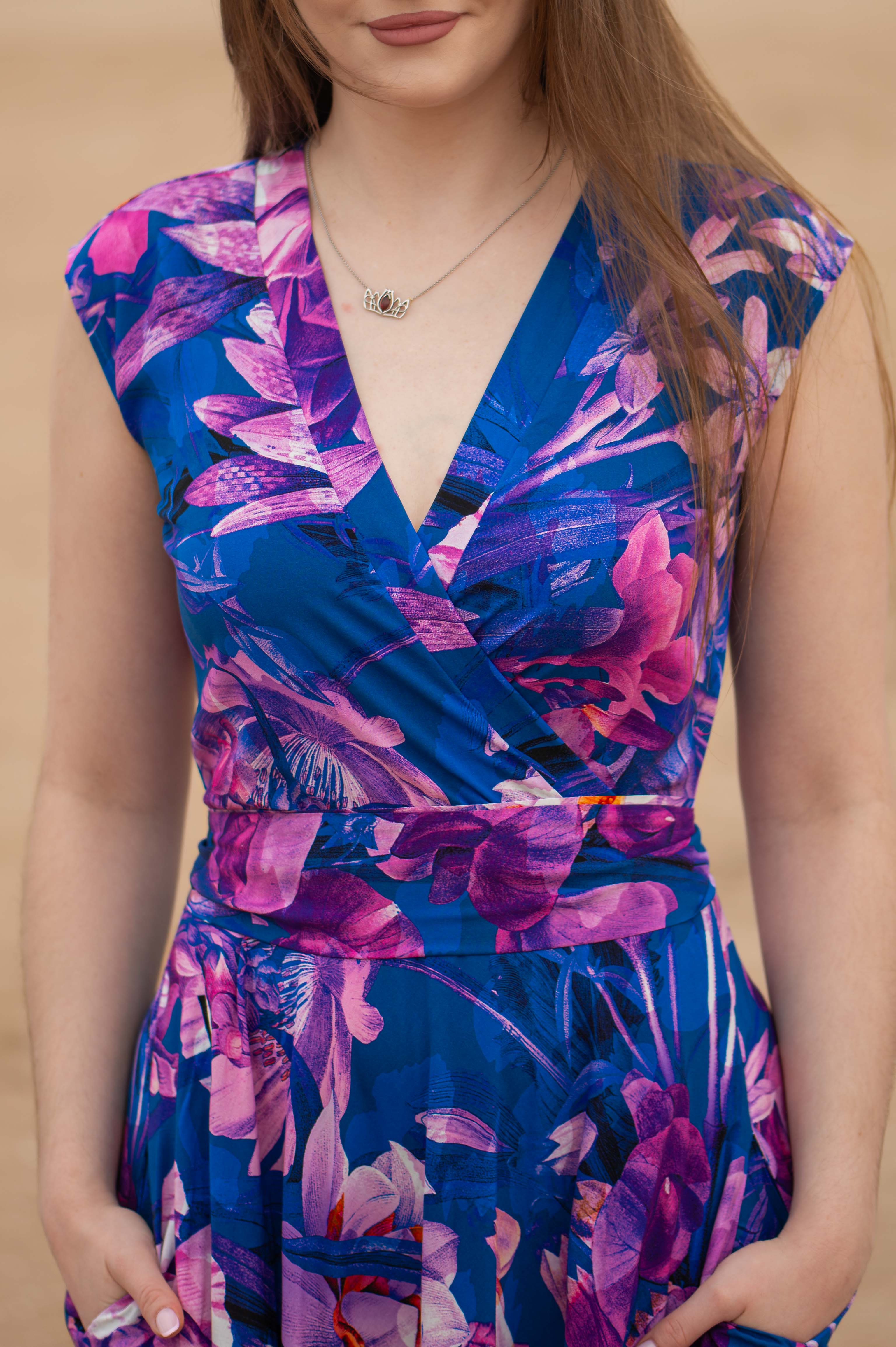 Sukienka wiskozowa MIDI rękaw motylek - Szafirowa fantazja